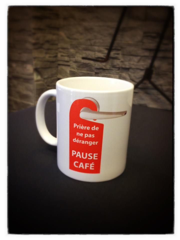 Prière de ne pas déranger PAUSE CAFÉ est un mug qui aura son succès pendant vos pauses de travail…. Une idée originale pour égayer le quotidien…
